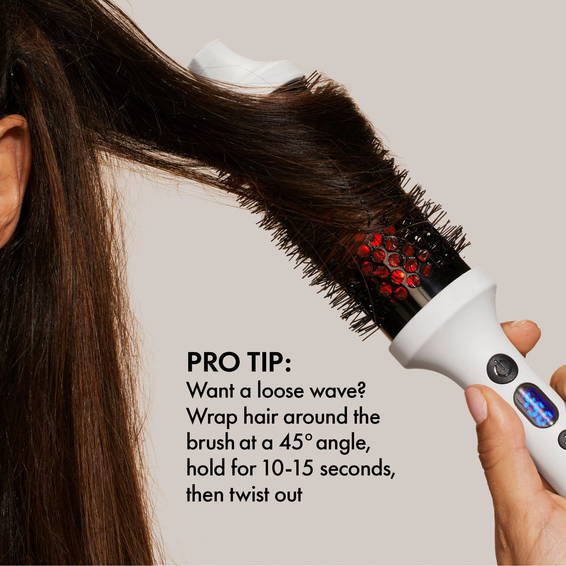 De Infrared Thermal Bounce Brush geeft je in enkele minuten een gladde, volumineuze blowout in 90’s-stijl, zónder föhn. Perfect voor droog haar en ideaal voor snelle, stijlvolle resultaten thuis.
