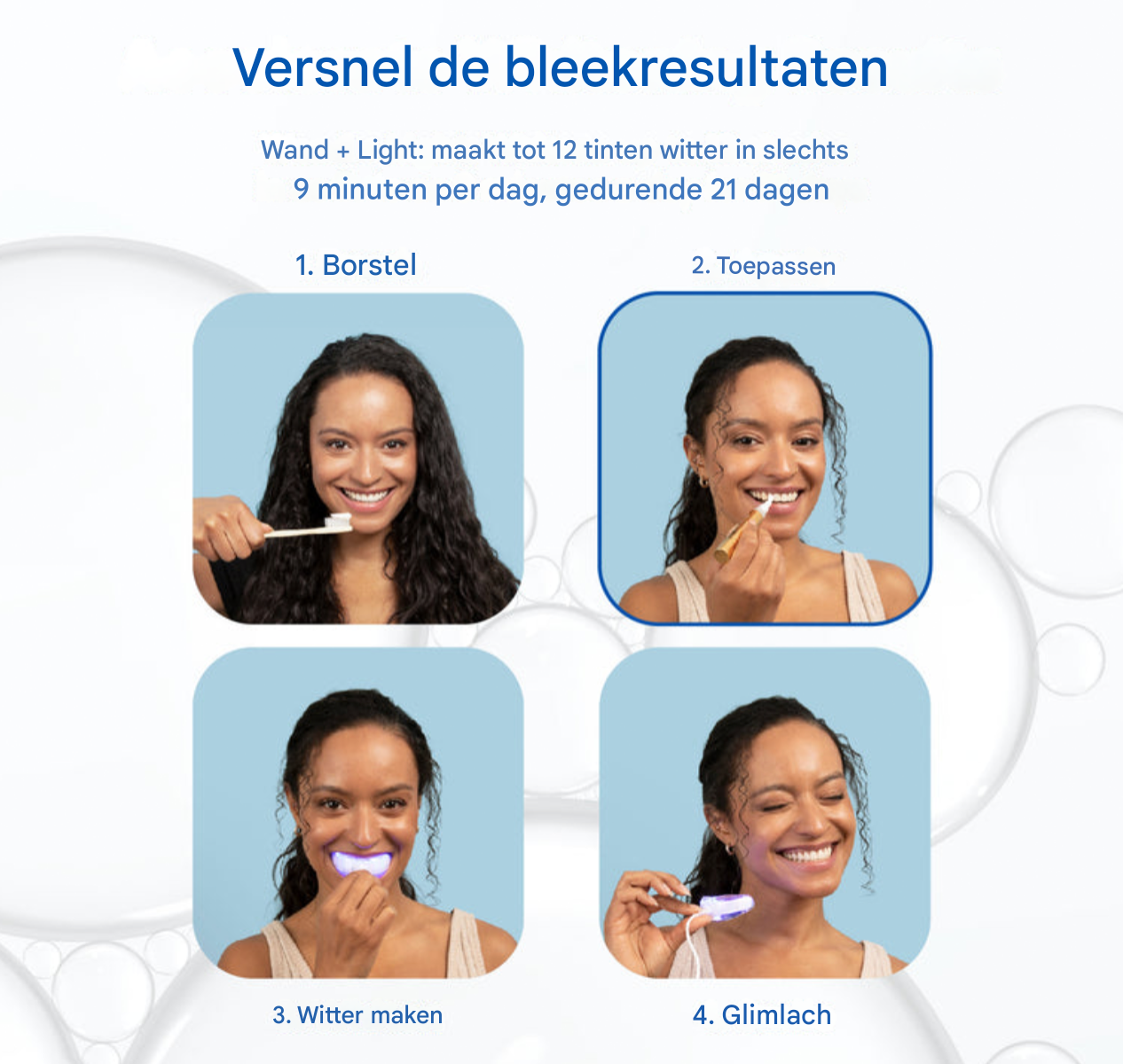 De unieke combinatie van werkzame stoffen zorgt voor een snellere én grondigere whitening dan standaardformules. Je tanden worden zichtbaar witter na slechts enkele toepassingen, zonder agressieve schuring of schade aan het glazuur.