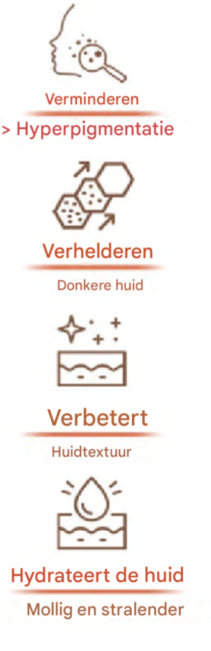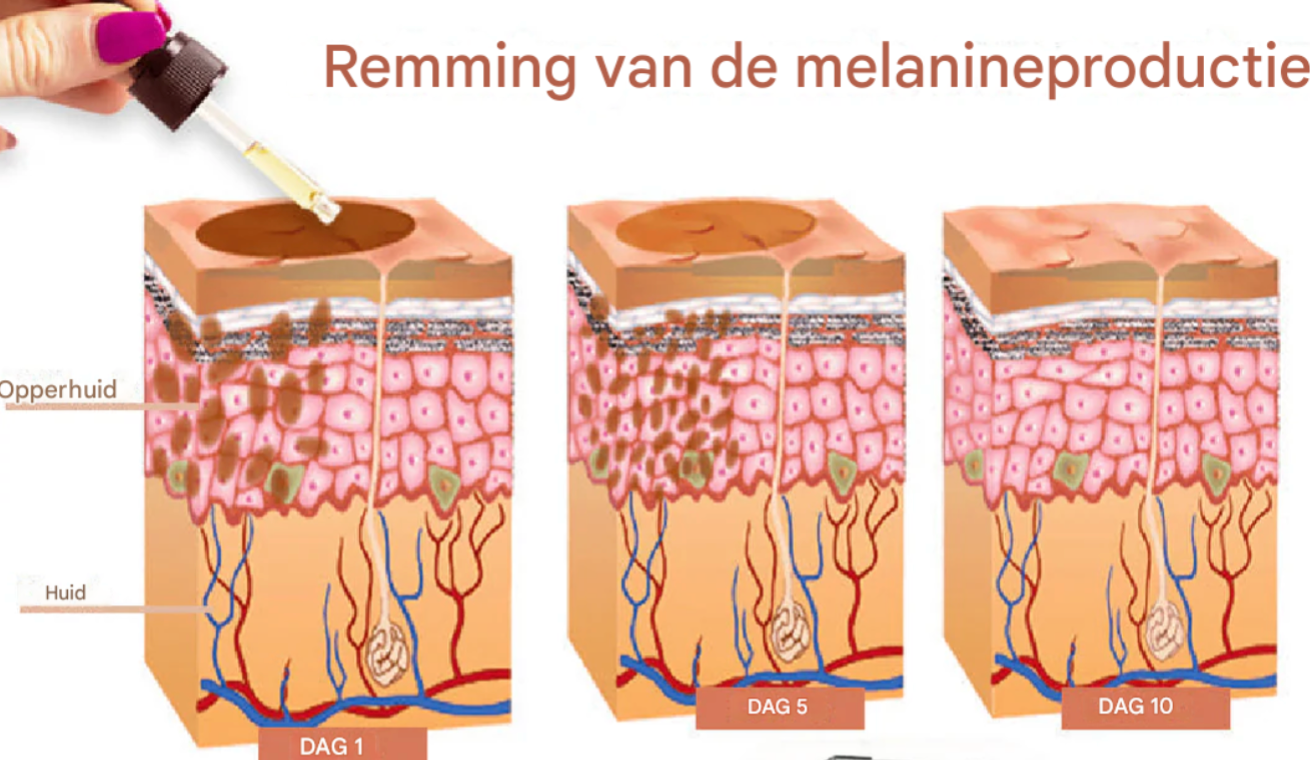 Dit serum is FDA-goedgekeurd, 100% plantaardig en dermatologisch aanbevolen. Het remt de overproductie van melanine, stimuleert celvernieuwing en voorkomt het ontstaan van nieuwe vlekjes. En dat alles zonder bijwerkingen of huidirritatie.