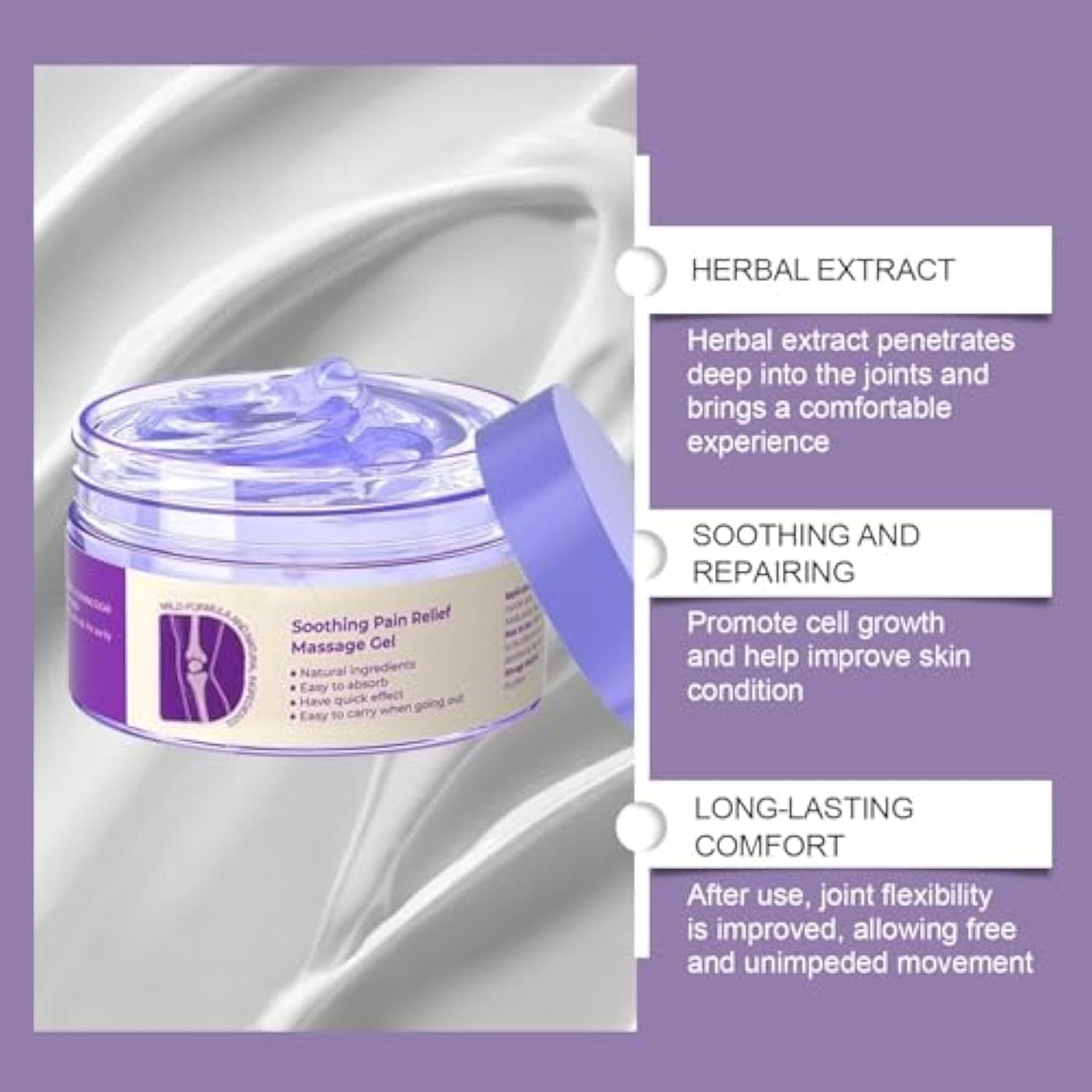 De unieke formule dringt diep door in de huid, verlicht ontstekingen en ondersteunt het herstel van kraakbeen. De gel is niet vet, irriteert niet en laat geen sporen achter – ideaal voor dagelijks gebruik, waar je ook bent.